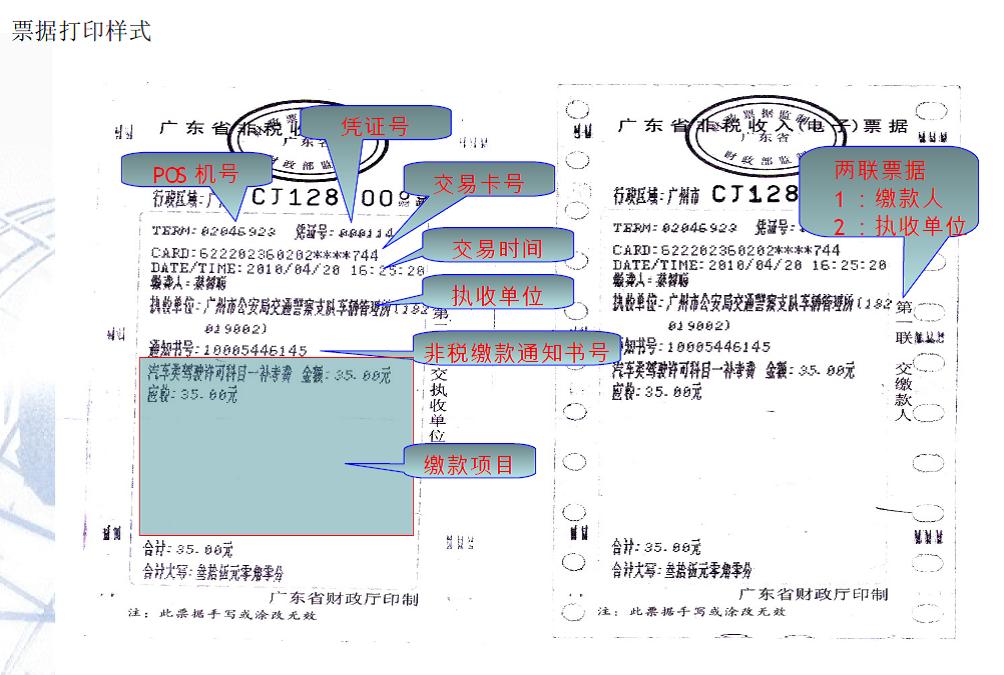 步骤七 领取财政收据。缴款人通过广州市非税收入网上缴费平台缴款成功后,如需财政票据请于缴款成功后三个月内到支付账户所在银行广州市内各网点办理打印《广东省非税收入(电子)票据》,需向银行提供缴款通知书编号、缴款人名称以及携带本人身份证。