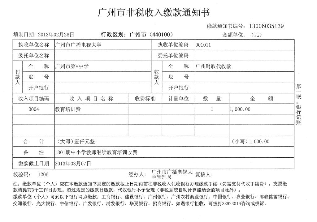 4、学员应在《缴款通知书》注明的缴款截止日期前办理缴费,超过限期《缴款通知书》作废,需到财务处重新开据《缴款通知书》。
